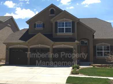 This is a beautiful home in one of the most popular rental communities in District 20 school boundaries. The home features hardwoods on the main level, a beautiful modern kitchen with granite and stainless steel, lofted bonus room or office. There is a family room with gas fireplace adjoining the kitchen with casual dining space. Main floor laundry and a powder bath. Upstairs is 3 bedrooms plus a lofted office, bonus room, play area. The primary bath has a huge soaking tub and separate standing shower. In the finished basement there is a large family room, a very big bedroom and another full bathroom. This home offers central air conditioning, humidifier, large stamped concrete patio in the fully fenced backyard and a beautiful breezeway upstairs that makes the home feel modern and inviting. Wolf Ranch is a wonderful community with open space, clubhouse, and lots of activities that you can choose to be a part of. Great location just off Powers Blvd makes for easy commutes to any of the military installations.
