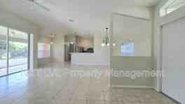 Light + bright home offers 3 bedrooms, 2 bathrooms, and 1,623 square feet of living space with an attached 2-car garage. Open floor plan with tile throughout, a breakfast nook, and formal dinging area, and triple sliding glass door to enjoy iced coffee in your extra-large screened-in lanai overlooking the FENCED yard. The bedrooms are split, and the master bed features a walk-in closet and slider doors with direct lanai access.