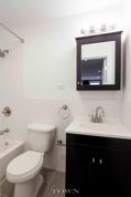 Inside, the apartment features a rare balance of pre-war detail like exposed brick with the highest level of renovation: GE range, refrigerator, dishwasher, and built-in microwave. Caesarstone counters. Custom soft-close cabinetry. Recessed lighting. And a brand new marble bath.