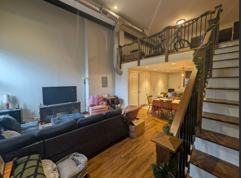 This luxurious 2 story loft-style apartment is one of the largest in the building. It features 17 ft. high ceilings giving it a spacious feel and includes 1 bedroom upstairs with a walk-in closet and 1½ bathrooms with a master bathroom that has dual sinks.