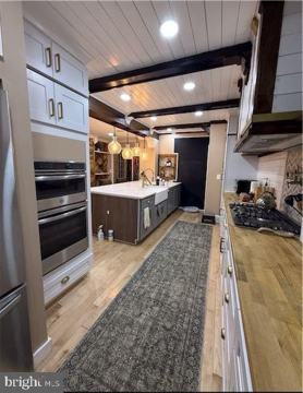 This beautifully designed 1-bedroom, 1.5-bath apartment offers about 1,000 square feet of thoughtfully finished living space, with custom woodwork throughout that gives it a warm, distinctive feel. The main living area features vaulted ceilings, exposed brick, and a gas fireplace framed by built-in bookshelves, creating a comfortable space that feels both open and inviting. The oversized kitchen is a standout, with more than 250 square feet of space, a large 6-foot island ideal for cooking or gathering, custom cabinetry and details, a pot filler, and even an electric fireplace that adds a cozy touch. It's a rare layout that balances character and functionality in the heart of Manayunk."
