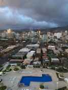 Ocean, city, mountain and Diamond Head views. High floor. Recently remodeled with laminate floorings and new paint. 24 hours security, great amenities and very convenient location. No pets. No smoking. 1 year lease. Washer & Dryer. Central A/C. Water included.