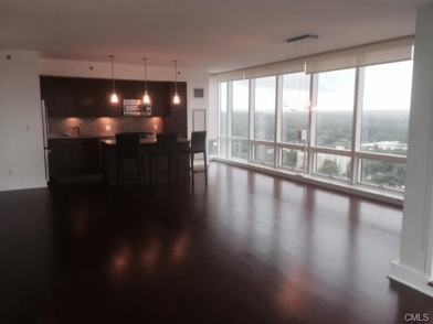 Sophisticated and sleek NE-facing 2 Bedroom/2.5Bath corner Penthouse in Fairfield County's only luxury hi-rise. Floor to ceiling windows boast sweeping views of the CT hills, Dntwn Stmfd and LI Sound. Gourmet open kitchen w/ wine chiller and stainless steel appliances, granite counter and island and cherry wood floors. 2 Bedrooms w/ walk-in closets, marble baths, spacious private balcony off of the huge open living room. Master Bath has Air Tub, separate marble shower and double sinks. 24 hr concierge and security, pool, sauna, fitness center, billiards room, roof deck, lounge, screening room, shuttle and 24 hr valet. Convenient living at it's finest! Steps to restaurants, movie theaters, Mill River Park, shopping and more!
