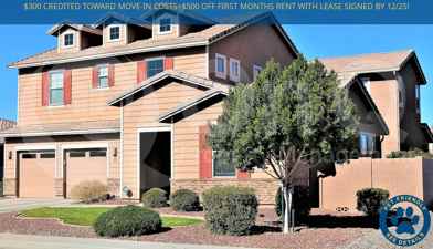 3988 Sq Ft! 4 bedroom, 4.5 bath house with a thoughtful two-story floor plan. Kitchen completed with a large dine-in area, boasts ample cabinetry and counter space, with a large center island and a breakfast bar. Including all appliances. Tile flooring in all the right places. Cozy living room perfect for entertaining and entertaining. Large upstairs loft perfect for a game room. Primary bedroom with a private bathroom complete with dual vanities and two walk in closet. Three secondary bedrooms with ample closet space and comfy carpet. Laundry room with washer and dryer. Three car garage. Lots of community activities including a splash pad, water features, parks, walking paths, green area, play parks, tennis court & sand volley ball in this subdivision Beautiful and convenient Gilbert location close to schools, shopping, and entertainment.