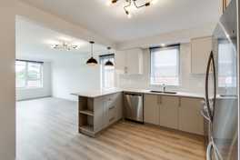 AVAILABLE May 1, 2026. Keele and Eglington. Completely renovated, large, well-lit, middle-floor, 2-bedroom unit in a quiet residential neighbourhood triplex. New tiled bathroom with all new fixtures. New kitchen cabinets with new stainless-steel appliances, including dishwasher and quartz countertop. New windows, new doors, refinished wooden floors and tiles throughout. 2 Split AC units. 1-year standard Ontario lease. Tenant pays Hydro directly, Gas and water based on consumption (extra deposit $100/month). No pets. Non-smoking. 5 min walk from Eglinton LRT, 15 min from new Mount Dennis UP & GO station. Outdoor parking on site ($65/month) or with permit on the street. Coin operated laundry in building. Common front lawn outdoor space with picnic tables.