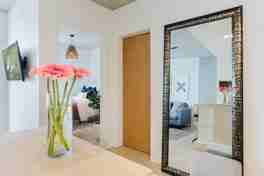 📅Availability Starting February 15th 2026*90 Day Minimum for RentalsPlease respond with preferred movin in date and length of stay when sending initial inquiry Walkthrough video available by request New updates:-Keypad lock entry-Mysa Thermostats-Pendant light in bedroom with dimmer switch-ROKU stick for TVIn Person Walkthrough Available All utilities are included in rental pricePlease use photos and floorplan images for details. Please contact me if you have any questions. Welcome to this downtown executive furnished rental. This 1 bed 1 bath condo has everything you need for your medium to long term stay. Enjoy premium appliance package (microwave, washer, dryer, induction cooktop, dishwasher). *Brand new dishwasher February 2024. *Brand new Electrolux washtower September 2024The fully stocked kitchen has plentiful storage including pull out pantry. Enjoy bonus small appliances (rice cooker, blender, toaster, airfryer). All dishes, pots, cutlery, knives and more are all included. The spa like bathroom features a deep soaker tub, rain shower head and automatic fan and under cabinet lights. All towels (inc hand towels, face clothes) are provided. The cozy living room has a comfortable sofa, smart TV, floor to ceiling windows lead out to a lovely furnished balcony. The bedroom has a custom smart closet, smart TV, queen bed with quality mattress, linens and blankets. Blackout blinds in the bedroom and livingroom provide comfort and privacy. Please note there is a strict no smoking policy1 well behaved dog allowed with pet deposit and signed pet addendum. No cats permitted. Please take note: There is construction nearby, there will be the possibility of construction noise during your stay. Business license number: 00042540