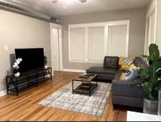 Large Fully Furnished 3 Bed/1 Bath apartment available near downtown Forest Park, blocks from the El, Oak Park, & River Forest. One assigned off street parking space. Coin laundry in basement. Comes with One Off Street Parking Space. Live in Forest Park, near transportation, restaurants, & shopping!