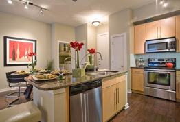 Your residence will have a modern kitchen, 10' ceilings, wood flooring and custom lighting and ceiling fans!