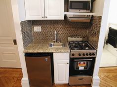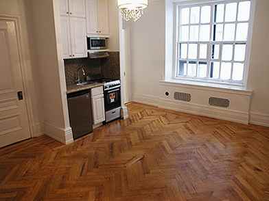 Renovated studio with brand new kitchen. Windowed bath. 2 closets. High ceilings, herringbone floors, and pre-war detail. Available immediately.