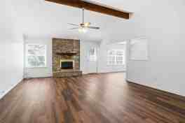 The kitchen offers abundant counter space, crisp white finishes, and a cheery breakfast nook overlooking the yard—perfect for casual dining or morning coffee. Throughout the home, a neutral palette creates a warm, welcoming feel that complements any style.