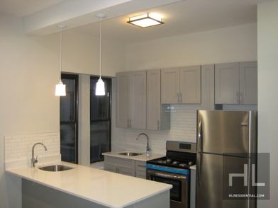 BE #1 to live in this MASSIVE LOFT LIKE, brand new gut renovated, drop dead gorgeous, quiet, clean, very bright & sunny 2 bedroom apartment with a living room and kitchen with open sky high views:
