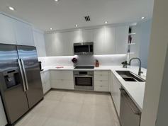 Completely remodeled 1 bed 1 and half bath with large ceramic tiles throughout with high ceiling this gem of an apartment has it all. Partially open kitchen concept with all Bosch appliances flows perfectly into a dinning / living area that is tastefully furnished with modern furniture. Unit is equipped with Bosch washer and dryer and plenty of storage space throughout. Large master bedroom with Ocean views is complimented with custom closet and a completely remodeled bathroom. Also, unit offers an balcony with ocean views perfect for relaxing entertaining. A must see, a truly turn key masterpiece.
