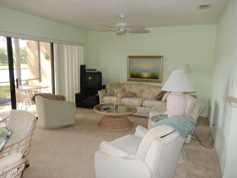AVAILABLE SEASON, OFF SEASON OR AS AN ANNUAL. You will feel relaxed every time you sit on the lanai and look over the beautiful, serene lake of this carriage home! This tastefully, fully furnished home has two bedrooms, two baths with attached garage. Amenities include a golf course, community club house, tennis and pools. It is centrally located near restaurants and shopping