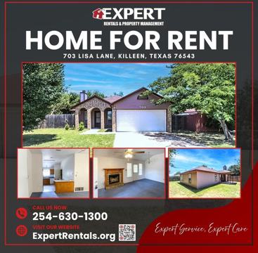 This charming home located in a desirable neighborhood of Killeen. This property offers a comfortable and modern living space, perfect for those seeking a place to call Home. Upon entering, you'll be impressed by the spacious and open layout. The living room features plush carpeting and is ideal for hosting gatherings or simply unwinding after a long day. Adjacent to the living area, you'll find a cozy dining space, perfect for enjoying home-cooked meals with loved ones. The kitchen is a true highlight, boasting stainless steel appliances, ample cabinet space, and gleaming countertops. Cooking and entertaining will be a breeze in this well-appointed kitchen. An adjacent breakfast nook provides a delightful spot to enjoy your morning coffee or casual meals. The primary bedroom is a serene retreat, offering a tranquil escape from the outside world. It features a spacious layout, large windows, and an ensuite bathroom with modern fixtures. Two additional well-sized bedrooms provide versatility, suitable for guests, or a home office. Outside, the sizable backyard offers endless possibilities for outdoor enjoyment.
