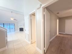The downstairs has 16" tile floors in the family room which has huge 20 foot ceilings and is right off the dining room and kitchen. The family room has a fireplace and leads to a large screened patio that is also tiled. The back yard is fenced.