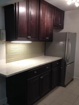 There is wood flooring throughout the unit. The kitchen was completely renovated with new cabinets, stainless steel appliances, and granite countertops. The bathroom boost a mixture of subway tiles and backsplash.