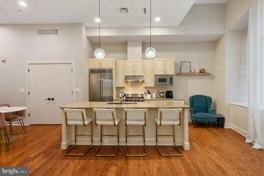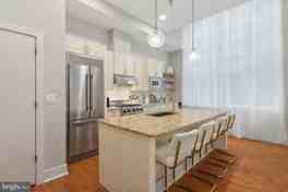 This masterfully designed and exceptionally upgraded one bedroom, one and a half bath residence is not to be missed! An impressive galley entrance welcomes you into an expansive living and dining area featuring soaring 14-foot ceilings, oversized windows, and gleaming hardwood floors. The lavish gourmet chef's kitchen showcases Viking stainless steel appliances, rich countertops, gas cooking, and an expansive island with breakfast bar seating - perfect for entertaining. The bedroom area complete with a seating area is generously proportioned and offers a sprawling walk-in closet with custom built-ins. The newer spa-like bathroom features a frameless glass-enclosed shower, a sink with a storage vanity, and designer finishes. A 24-hour lobby attendant, a residents-only rooftop deck, and a landscaped courtyard complete this impeccable designer home. Perfectly located in desirable Rittenhouse Square, this stunning residence is in the heart of Center City, surrounded by fine dining, one-of-a-kind shopping, exciting nightlife, and world-renowned cultural destinations. The campuses of Penn and Drexel, 30th Street Station, Trader Joe's, and major hospitals are all just minutes away. On-site Garage Parking available for an additional fee.*Photos are from another unit with similar finishes and identical floor plan*