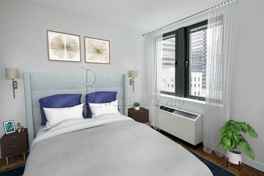 This spacious one-bedroom flex. apartment located on a 14th floor features high ceilings, hardwood floors, and oversized windows for a bright, airy feel. The modern kitchen boasts granite countertops and stainless steel appliances, while the bathroom offers luxury finishes. Enjoy top-notch amenities including a 24-hour doorman, a fitness center, a landscaped rooftop sundeck, and a stunning 100-foot-high atrium with a glass skylight.