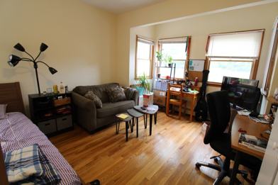 Quiet first floor apartment set back from the street. Three bed split, walk in closet, eat-in kitchen, private deck, shared patio and yard. 5 min walk to central.