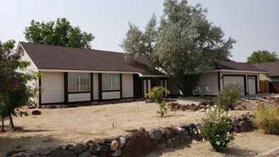 This spacious ranch style home is located in Spanish Springs on over a one acre lot. Will accept one horse with an additional deposit. The kitchen has plenty of counter space and all the amenities, dishwasher, range, fridge and microwave. The kitchen is open to a large dining room with a wood burning fireplace for those cold winter days. Extremely large living room that would be great for entertaining. The master bedroom has a large walk-in closet and a bathroom with garden tub. Second bathroom has double sinks. Laundry room includes washer and dryer hookups, sink and a walk in pantry with plenty of storage space and shelves. The laundry room opens to the 3 car garage. includes a work bench. Environmental friendly, low maintenance front yard. FA/AC.