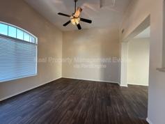 This lovely 3-bed / 2.5-bath Phoenix home is located in a gated community and is move-in ready! Upgrades like vaulted ceilings and cute niches with wood-like flooring and ceiling fans throughout. The kitchen features ample storage and upgraded cabinets with separate dining area. The primary bedroom boasts an ensuite bathroom with dual sinks and large walk-in closet. Enjoy the private patio, 2-car garage, and community pool. Close to parks, restaurants, and Westgate Entertainment District. Check this one out!