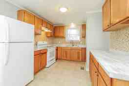 Inside, the living spaces feel bright and open, featuring hardwood flooring that flows seamlessly throughout each room for a clean, cohesive look. The kitchen stands out with its warm oak cabinetry, marbled countertops, and white appliances, including an electric range, vent hood, and refrigerator. A window above the sink fills the space with natural light, and a connected laundry room adds to the home’s practical design.