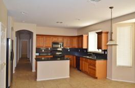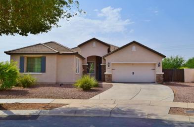 Lovely Surprise home has 5 bedrooms, 2 baths and 2149SF, located on a quiet cul de sac. Neutral colors, carpet, tile and ceiling fans throughout. Large kitchen with custom cabinets, black/ stainless steel appliances and center island. Bayed out dining area and large family room off kitchen. Spacious inside laundry has washer/dryer hookups. All the bedrooms have large closets with upgraded paneled sliding doors. Master bedroom has separate door to back patio and huge walk-in closet. Master bath has double sinks, garden tub, separate walk-in shower and toilet room. Huge walled-in yard has covered patio and RV gate. The neighborhood has a large family park, covered play area, splash pad and soccer field. Surprise is conveniently located to shopping, restaurants and transportation.