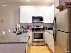 -Renovated eat in kitchen with dishwasher, disposal, microwave, granite counters, recessed lighting, kitchen island
