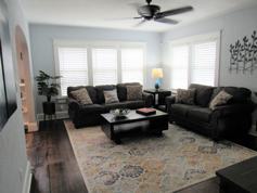 Your beach bungalow awaits! This charming and well-appointed 2 bedroom, 1.5 bath house has been beautifully renovated (while holding true to the architectural style of the mid '40s) and is situated on an oversized lot less than a block from the beach. This home has hardwood and tile flooring throughout and features separate living and dining rooms, kitchen, two bedrooms, 1.5 baths, a separate laundry and a bonus room on the main living level with a garage/storage room at the street level. Light and bright with ample windows to let in tons of natural light and a huge, fully fenced yard that is perfect for relaxation and entertaining. Each bedroom has a queen-sized bed with dressers and cedar closets for storage. The living room has a queen-sized, sleeper sofa and a large, smart TV. The dining room seats 4 and the bonus room seats 2.