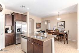 Immaculate single level home in San Tan Valley is available for occupancy on 12/1/25. Spoil yourself with beautiful mountain and sunset views and a heated pool and spa, with pool service! The 3-bedroom, 2-bathroom split floor plan features a king-sized primary bedroom with a giant, walk in closet, as well as a custom walk-in shower. The kitchen is up to date with stainless steel appliances and granite countertops The additional features include a water softener, RO System, and sunscreens.