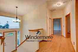 Welcome to this 3 bedroom 2.5 bathroom home located in the beautiful Polnell Shores! This home features an open concept living area fully equipped with a gas fireplace and a built-in entertainment center in the living room perfect for a 55" TV. Off the living room you have a balcony to enjoy the gorgeous view! The kitchen features updated stainless steel appliances and plenty of counter space. With all your rooms and full bathrooms on the same floor it makes life a breeze! A large primary bedroom with a spacious bathroom including a double vanity, soaking tub, and standing shower. Downstairs there is a conveniently placed mud room off the garage as well as a half bath with the laundry room. With a smaller fenced backyard, it makes taking care of the landscaping very easy!