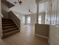 Immaculate, popular Charleston side row style home with formal living and dining rooms featuring crown molding and wood floors, kitchen amenities include pantry as well as an eat-in area. Over sized secondary bedroom with access to outdoor and floor balcony. Bonus room and great room provide lots of space for family entertainment. Enjoy evenings on the front porch or the rear, screened patio fenced yard for privacy.