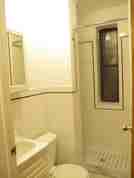 The entrance open on a foyer with wall closet space to the left, bathroom in the front and kitchen to the right.