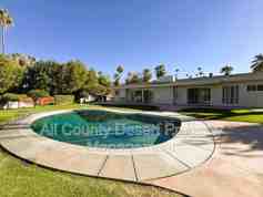 Welcome to Palm Desert! Centrally located near El Paseo Shopping District, Restaurants, Groceries, Hiking Trails, and more! This beautiful 3 bedroom 3 bath home features granite tile counter kitchen tops, vaulted ceilings, tile floor throughout, shutters in living/master windows and sliders, carpet bedrooms, appliances such as refrigerator, microwave, and dishwasher included. A focal point when entering this delightful Mid-century classic is the raised-hearth, gas fireplace and all the windows that bring natural lightning. Master suite has a beautiful soaking tub with shower overhead, separate sink, and dressing room. Guest bedrooms perfect size with adequate closet space. Attached 2 car garage with an additional storage space and den. There are 2 patio areas! One on the North side, looking out to pool area, and on the East side under a shaded porch. Circular driveway enhances the homes curb appeal. The spacious backyard with your private crystal clear pool is perfect for the Desert. Pool and Landscaping Services included in the rent. Tenant to pay all utilities.