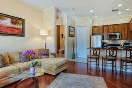 Available April 1, 2026. Location! Location! Location! Fully furnished top floor, south facing + upgraded 1 Bedroom + 1 Bath condo with private balcony + views of the Santa Rosa Mountains. Adjacent to the Embassy Suites Hotel, this condo has a fully equipped kitchen, 2 flat screen tvs, gas fireplace, washer/dryer inside, oversized shower + vanity in the bathroom, walk-in closet in the bedroom. Cable TV and internet included in rent. Across the street from Old Town La Quinta with great restaurants, shopping, in season art festivals + farmer's market. Sorry, no pets.