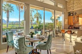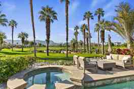 Mountain and Lake views! This desirable south west facing Encanto 1 home has views that seem to go on forever! The upgrades and additions create your own private resort with 3 bedrooms, (all king beds) and ensuites. The beautifully furnished and comfortable great room comes complete with built in bar and large screen TV. A well-appointed chef's kitchen, includes an island for food preparation. The beautiful back yard with pool and spa showcases a relaxing lifestyle overlooking three holes of the Steve Pate course. Relax and unwind on your expansive deck while views of the Santa Rosa mountains wash your cares away! This beautiful home has been meticulously cared for by its owners. Utilities are capped at $250. per month. Includes wifi and cable TV! Please call for available dates!