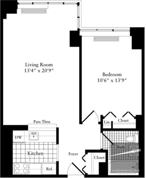 This is a renovated 1 bedroom 1 bathroom with 9+ ft Ceilings and a Pass-thru Kitchen on the West End.