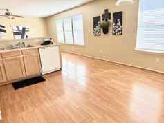 This highly appealing floor plan features a spacious, open layout with a large living area and dining space that includes sliding doors leading to the backyard. The bedrooms are generously sized and offer walk-in closets, while the home also includes a large laundry room with a pantry for added convenience. Recent updates include fresh paint, new blinds throughout, and a fenced backyard with a patio—perfect for relaxing or entertaining.