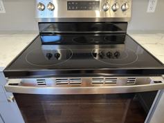 New stainless steel refrigerator, gas stove & oven, built in microwave oven, dishwasher.