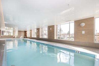 Amenities: Large gym, 60-feet indoor lap swimming pool, hot tub, playground, enormous rooftop gardens with gorgeous North Shore mountain view and meeting rooms.