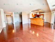 As you step into the condo, you'll be greeted by warm wood flooring that flows seamlessly throughout the space, complemented by sleek wood cabinets in the kitchen. The kitchen is fully equipped with all appliances included, featuring a stainless steel sink and dishwasher for easy meal prep and cleanup. Illuminating the kitchen is a beautiful hanging light fixture, adding a touch of elegance to your culinary space.