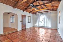 When you enter the main home, you'll be greeted by a tiled great room with a gorgeous beamed, cathedral ceiling and a picturesque, arched front window overlooking the front yard.