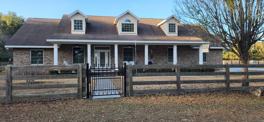 Enjoy peaceful views of the pastures from the large screened-in back porch, or relax on the covered front porch with your morning coffee while watching the sunset. The property also includes a spacious garage and is fully fenced with an electric gate opener.