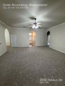 Welcome to your dream home in Harker Heights, TX! This stunning 4-bedroom, 2-bathroom property is brimming with desirable features and amenities. The home boasts a mix of tile and carpet flooring, creating a comfortable and stylish living environment. The kitchen is a chef's dream with a white microwave vent hood, a white glass flat top oven, a white refrigerator, and a goose neck sink. The master bathroom is a sanctuary of relaxation, complete with a jacuzzi style tub, a separate stand-up shower, a separate toilet room, and dual vanity. The master suite also features his and her closets for ample storage. The living room is cozy and inviting with a wood-burning fireplace and recessed lighting. The house also features arch walkways, a wood privacy fence, and window blinds for added privacy. The covered back patio is perfect for outdoor relaxation or entertaining, complete with a ceiling fan for those warm Texas days. The home also includes a 2-car garage, a disposal system, and ceiling fans throughout. The breakfast/dining area is elegantly designed with chair railing. This home is a perfect blend of comfort and style, waiting for you to make it your own.