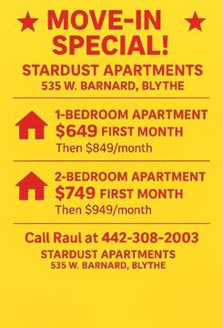 Property Id: 1055653 Special Rent Promotion!! First month rent only $749. After that it's $949. Nice two-bedroom located in Blythe! Stove and refrigerator included. Laundry facilities on the property! Pool!