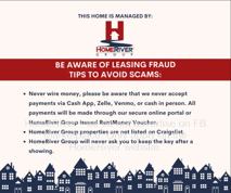 HomeRiver Group does not advertise properties on, LetGo, or other classified ad websites. If you suspect one of our properties has been fraudulently listed on these platforms, please notify HomeRiver Group immediately. We never accept wire transfers or payments via Zelle, PayPal, or Cash App. Lease your home safely through www Homeriver com or with the assistance of a licensed HomeRiver Group leasing agent. All leasing information contained herein is deemed accurate but not guaranteed. Please note that changes may have occurred since the photographs were taken. Square footage is estimated.