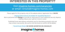 Imagine Homes Management is proud to offer a security deposit alternative to qualified renters through Obligo! We understand that moving costs can add up, so we want to extend financial flexibility to our residents.
