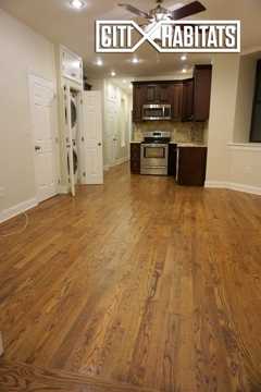 Stunning 1200 sq ft floor though, loft-like three-bedroom, two bath in a brownstone with huge private garden. The apartment was newly built two years ago and features a large chefs kitchen with custom cabinetry and stainless steel appliances, in unit washer/dryer, queen sized bedrooms and great closet space. There is a video intercom and the apartment is near the B/C and 2/3 trains and Columbia University.
