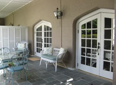 The magnificent French doors lead out to the private patio area with enough furniture for entertainment purposes, and there's also a lovely garden on the property!