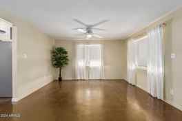 Beautifully remodeled 3 bed, 2 bath duplex! Ideally located across from Sunnyslope Elementary School and just moments from the scenic North Mountain hiking trails and parks, this home offers both convenience and natural beauty. Step inside to discover a bright, modern interior featuring stained concrete flooring throughout and updated bathrooms with stylish fixtures and tiled tubs. The kitchen boasts granite countertops and sleek black appliances, perfect for all your culinary needs. Additional highlights include wood shutters, a versatile laundry/craft room, and covered off-street parking.